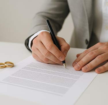 Oferecemos todo o suporte para ações de divórcio, sejam consensuais ou litigiosos, via judicial ou extrajudicial. Ajudamos a definir questões como alimentos, e, caso haja filhos, também cuidamos dos acordos de guarda e visitação. Também dispomos de auxílio jurídico especializado para formalizar partilha de bens. Nosso objetivo é conduzir o processo com transparência, sempre buscando soluções justas, claras e respeitosas para todas as partes envolvidas.